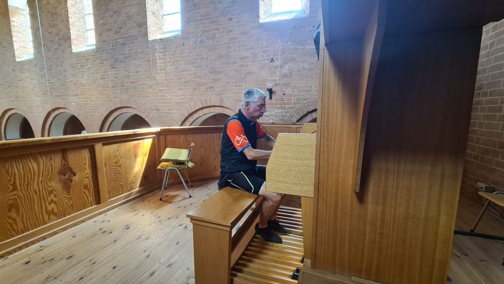 Eine Stadt, Ein Wahrzeichen, Ein Verein Veröffentlichung:1 September, 2025 Orgelkunst im Kirchturm Martin Schulze begeistert in Sandau Am 31. August 2025 war die St.-Laurentius- und St.-Nikolaus-Kirche in Sandau Schauplatz eines besonderen Konzerts. Der bekannte „Fahrradkantor“ Martin Schulze aus Frankfurt (Oder) machte auf seiner musikalischen Radreise Station und erfüllte den Kirchenraum mit meisterhaften Orgelklängen. Trotz spätsommerlicher Hitze fanden sich rund 16 Besucher ein und erlebten ein Programm, das von barocker Strenge bis zu romantischer Virtuosität reichte. Auf der Sandauer Orgel erklangen Werke von: Johann Sebastian Bach: Dorische Toccata Georg Böhm: Präludium C-Dur Max Drischner: Passacaglia E-Dur Théodore Dubois: Toccata G-Dur Schulze beeindruckte nicht nur durch seine technische Perfektion, sondern auch durch die spürbare Leidenschaft, mit der er spielt. Seine Interpretation verband kraftvolle Pedalarbeit mit feinen, nuancierten Linien und ließ das historische Instrument in ganz neuer Klangfülle erscheinen. Der Fahrradkantor, der jährlich über 15.000 Kilometer mit dem Rennrad zurücklegt, ist bekannt dafür, Musik auch an Orte zu bringen, die abseits großer Konzertprogramme liegen. Mit seiner Mischung aus Virtuosität, persönlicher Erzählung und unmittelbarer Nähe zum Publikum wurde das Konzert in Sandau zu einem unvergesslichen Erlebnis. Kommentar schreiben Antworten abbrechen Du bist angemeldet als Nico Heller. Dein Profil bearbeiten. Abmelden? Erforderliche Felder sind mit * markiert Message* Δ Das könnte Sie auch interessieren Orgelkunst im Kirchturm 1 September, 2025 Jugendmusikfest – In Capella 25 August, 2025 Thomas Kübler begeistert in der Sandauer Kirche 24 August, 2025 „Sandau – mein Herz lässt dich grüßen“ 21 August, 2025 Der Fahrradkantor in Sandau 21 August, 2025 Gemeinsam erinnern – gemeinsam hoffen 7 April, 2025 mehr von unserer Kirche Startseite Über uns Geschichte Startseite Über uns Geschichte Online Spenden Spenden-Widget Mit Ihrer Spende unterstützen Sie den Wiederaufbau der Sandauer Kirche und ermöglichen uns, unser ehrgeiziges Ziel zu erreichen. Ihre großzügige Unterstützung fließt direkt in die Finanzierung der Baumaßnahmen und hilft uns, die historische Kirche wieder in ihrer alten Pracht erstrahlen zu lassen. Jeder Beitrag zählt und macht einen bedeutenden Unterschied. Durch Ihre Spende ermöglichen Sie nicht nur den Wiederaufbau von Mauern und Türmen, sondern auch die Schaffung eines lebendigen Ortes der Begegnung, des Glaubens und der Kultur. Die Sandauer Kirche wird zu einem Zentrum, das Menschen aus nah und fern zusammenführt und eine inspirierende Atmosphäre schafft. Wir sind zutiefst dankbar für Ihre Unterstützung und versprechen, Ihre Spende gewissenhaft und effizient einzusetzen, um das Projekt voranzubringen. Gemeinsam schreiben wir Geschichte und bewahren ein wertvolles kulturelles Erbe für kommende Generationen. Nochmals vielen Dank für Ihre großzügige Spende und Ihre Teilnahme an unserer leidenschaftlichen Mission, die Sandauer Kirche zu neuem Leben zu erwecken. Zusammen gestalten wir eine strahlende Zukunft für dieses bedeutende Bauwerk. Altmark-Podcast Kontakt Kirchberg 939524 Sandau BürozeitenDi: 10:00 – 12:00 & 15:00 – 18:00Tel. 039383236Tel. 039383243 Links KONTAKTIMPRESSUMDATENSCHUTZSPENDENKONTO © 2023-2025 Webdesign-Havelberg.De. all rights reserved.